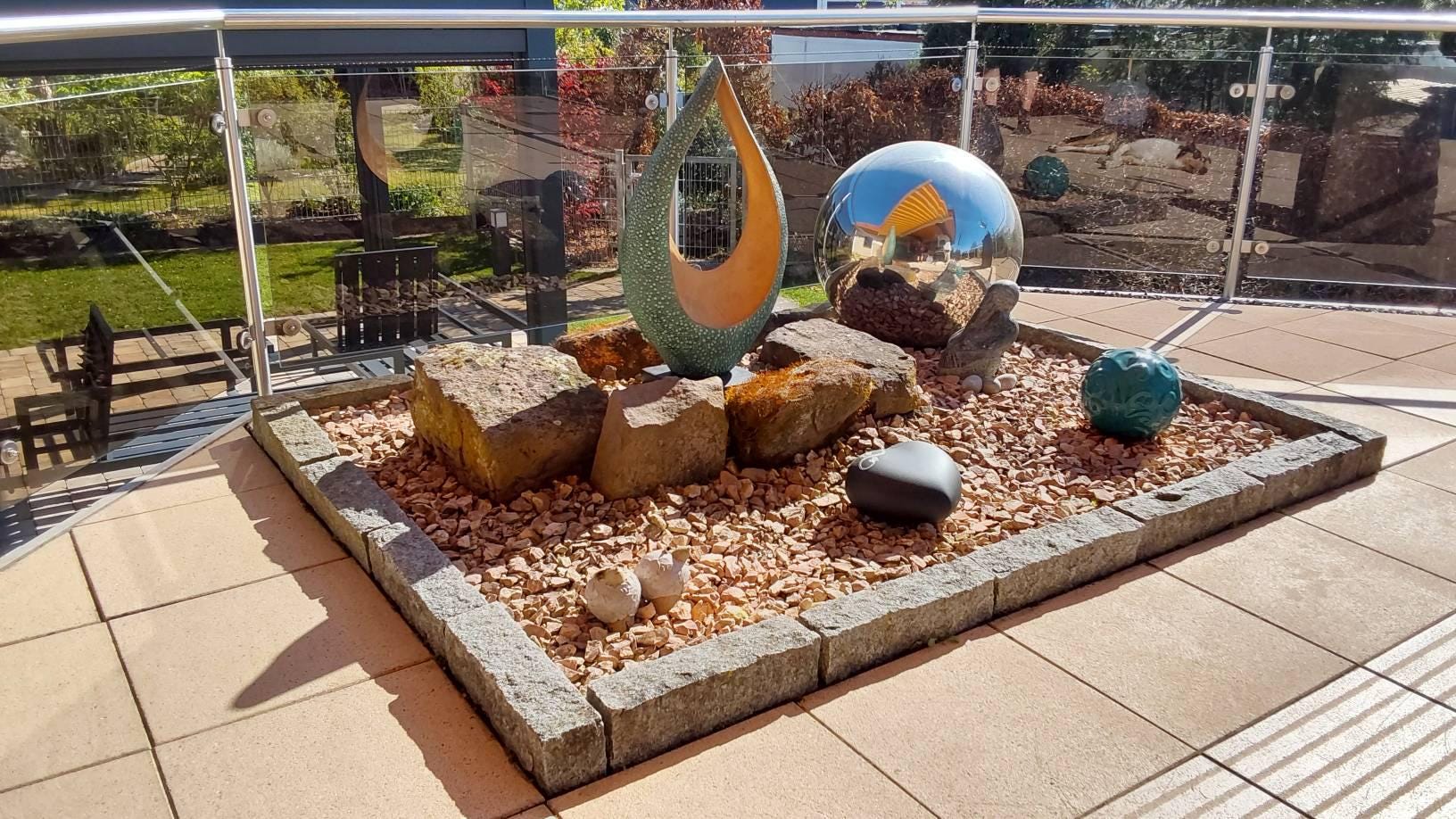 Also, some photos show my sculptures displayed on slate-affect planters that have been turned upside down and used as pedestals. They are relatively inexpensive and you can find a variety of stone finishes and sizes. They are also easy to move around. One customer placed a tile, matching in size and colour, on top of an upturned planter to display their sculpture, which looked great. https://www.primrose.co.uk/planters