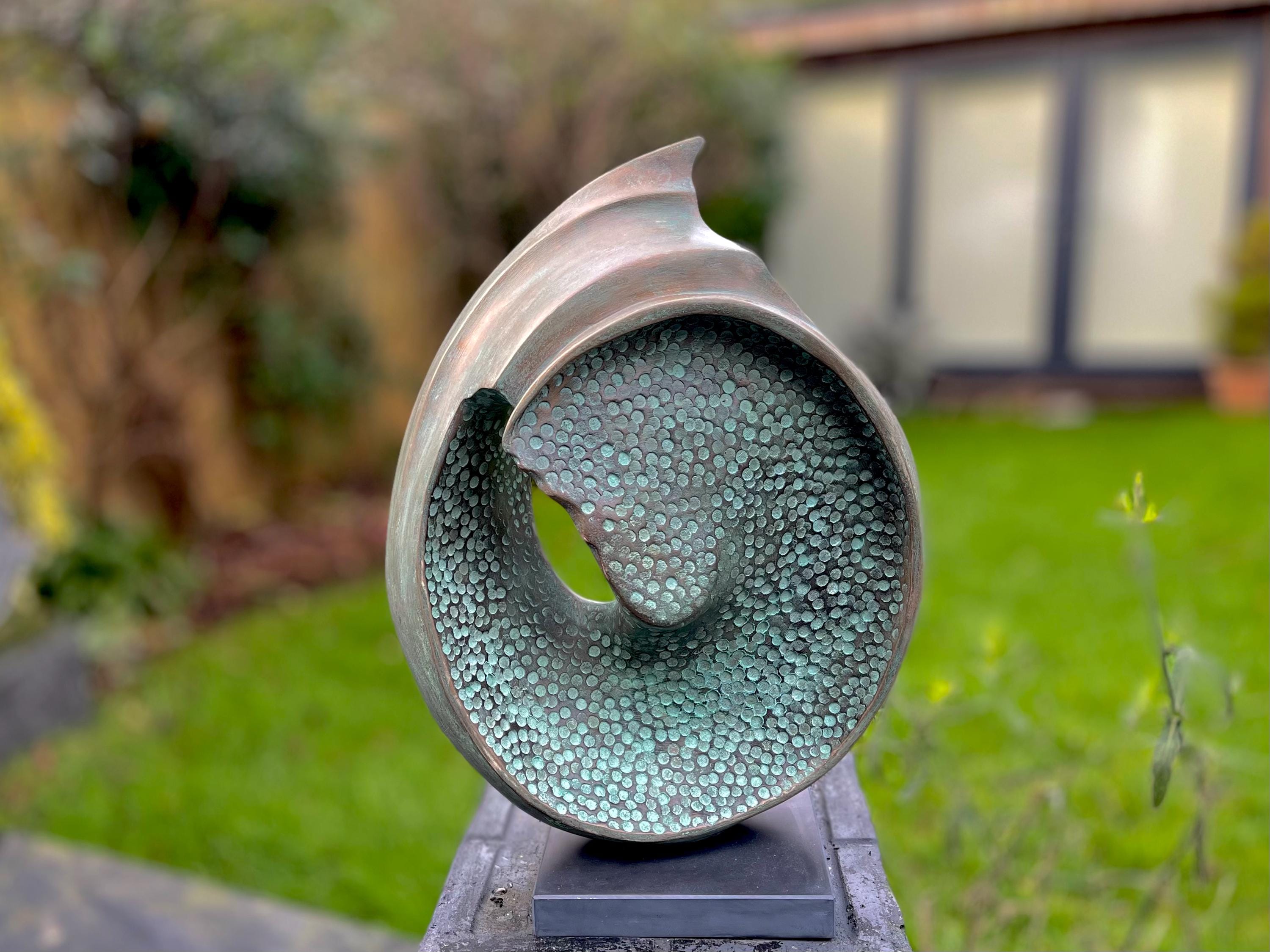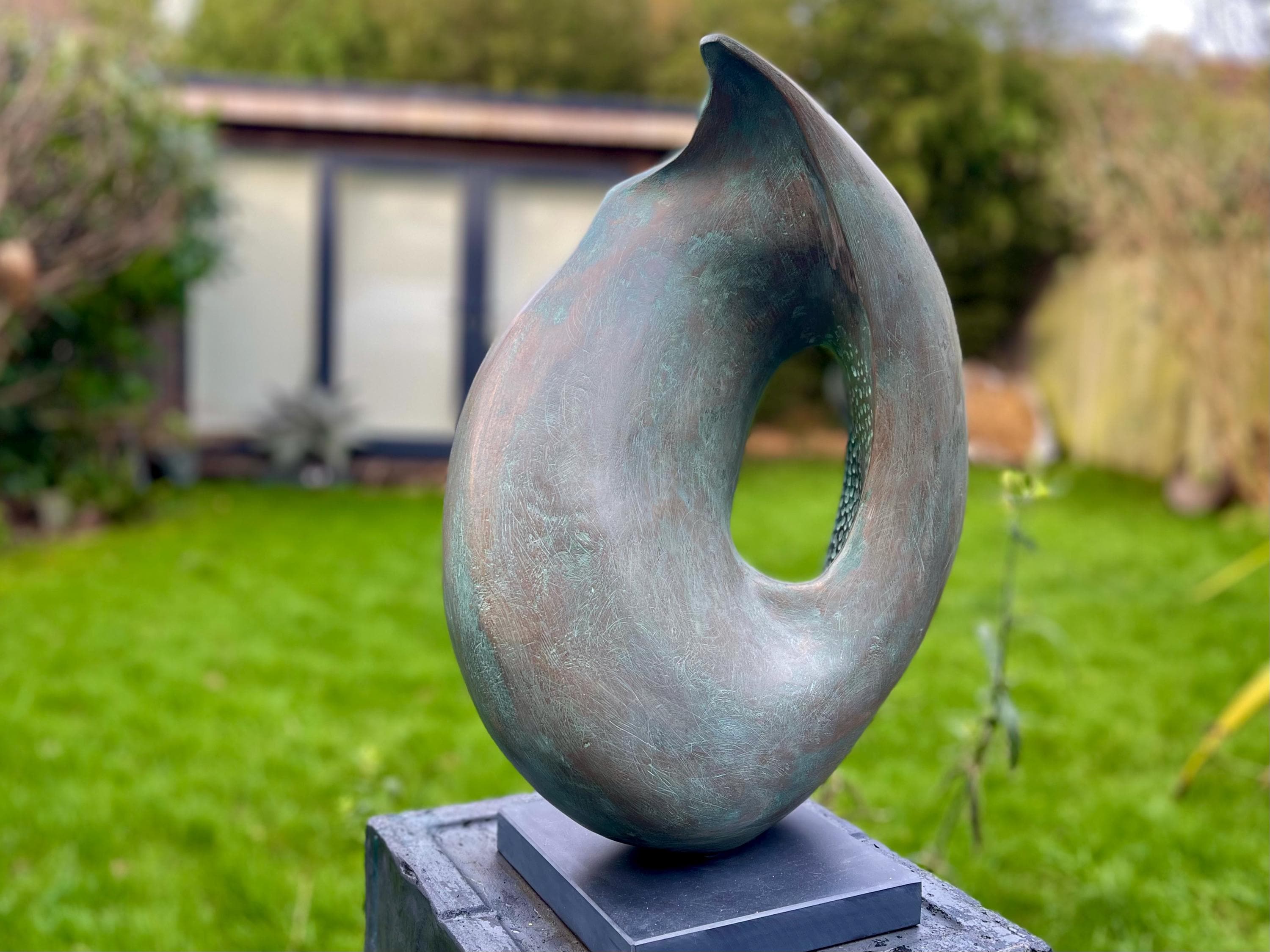 Inspired by a broken shell discovered on a beach in Fiji, this modern abstract sculpture captures the essence of nature’s forms in a striking design. Handmade in cold cast bronze and resin, each piece is part of a numbered edition, individually cast and finished to highlight its unique curves and textures. Suitable for both gardens and interiors, Fiji serves as a bold centrepiece in patios, landscaped spaces, or contemporary home décor. Combining the elegance of bronze with the durability of resin, it offers collectors a work of art that brings together modern design, natural inspiration, and timeless craftsmanship.