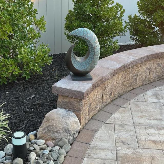 Shoreline garden sculpture - Inspired by the meeting of land and sea, a handmade contemporary abstract sculpture crafted in cold cast bronze and resin. Its flowing form captures the rhythm of nature, making it a striking focal point for both garden and home. Individually cast and hand-finished, offering a sculpture that blends modern design, durability, and timeless artistry.