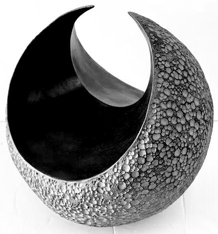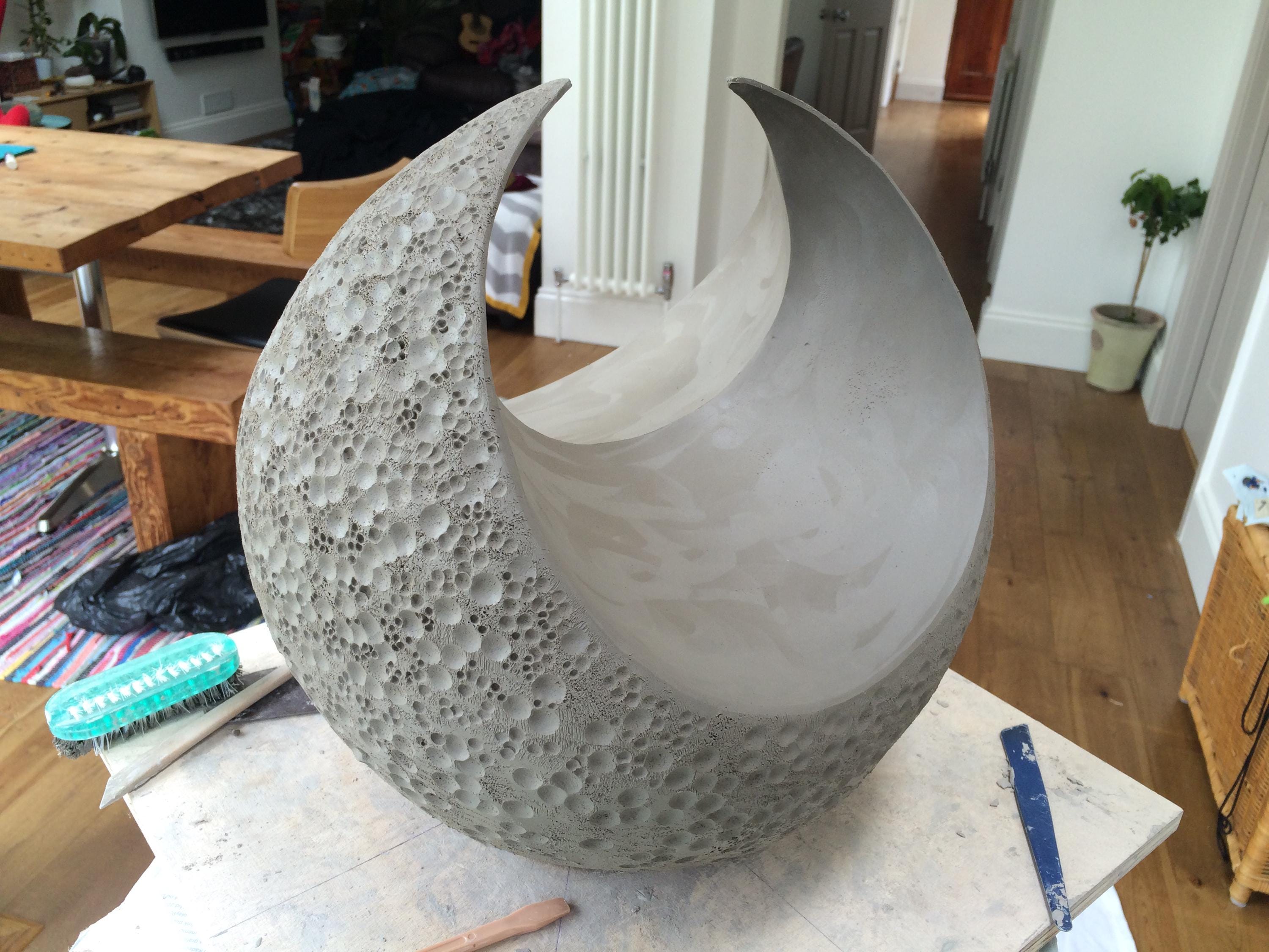 The crescent shape sculpture represents the moon and sun setting on the sea. Curling waves and the effect of the water's smoothing affect on objects. I live on the coast and am inspired by the textures found along the coastline and the movement of the water along the shoreline. There is a wonderful array of patterns and textures found along the coastline.