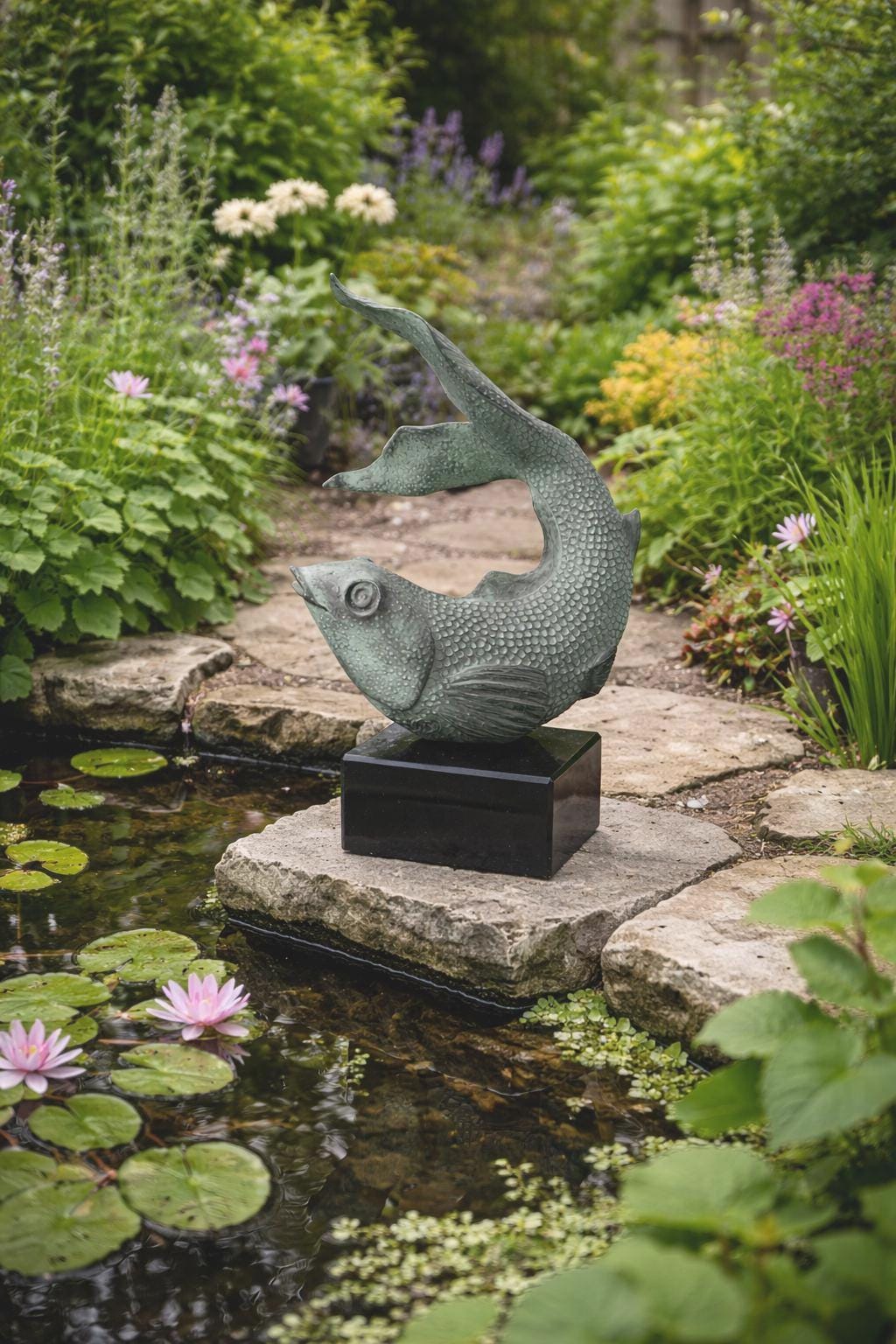 Graceful and symbolic, Koi Fish is a modern contemporary abstract sculpture handmade in cold cast bronze and resin. Perfect as a feature beside a garden pond, displayed on a patio, or showcased indoors on a bookshelf, coffee table or any interior space. Combining the timeless beauty of bronze with the strength of resin, Koi Fish offers collectors a unique work of art that brings harmony and movement to any setting.